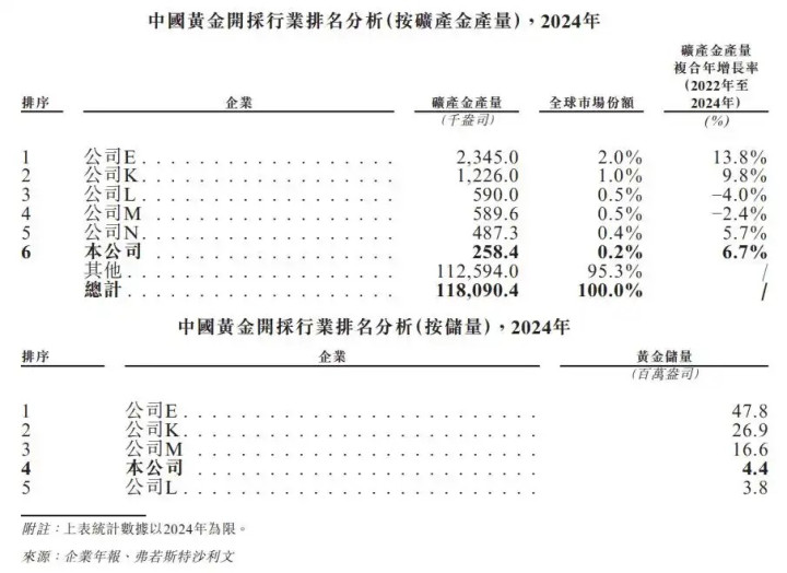 根据弗若斯特沙利文的资料,山金国际的黄金产量(8.04吨)排在中国黄金生产商第六位,黄金储量(153.5吨)全国排名第四;2024年黄金开采业务毛利率高达73.7%,高出同行平均值超过20个百分点,是盈利能力最强、成本效益领先的黄金生产商(按黄金矿产毛利率及黄金矿产成本计)。